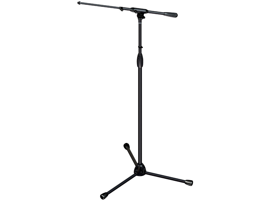 Asta microfonica professionale a giraffa, indicata per tour e noleggi, con altezza estesa e base a tre gambe, altezza regolabile da 1060 a 1640mm, giraffa regolabile da 480 a 880mm.