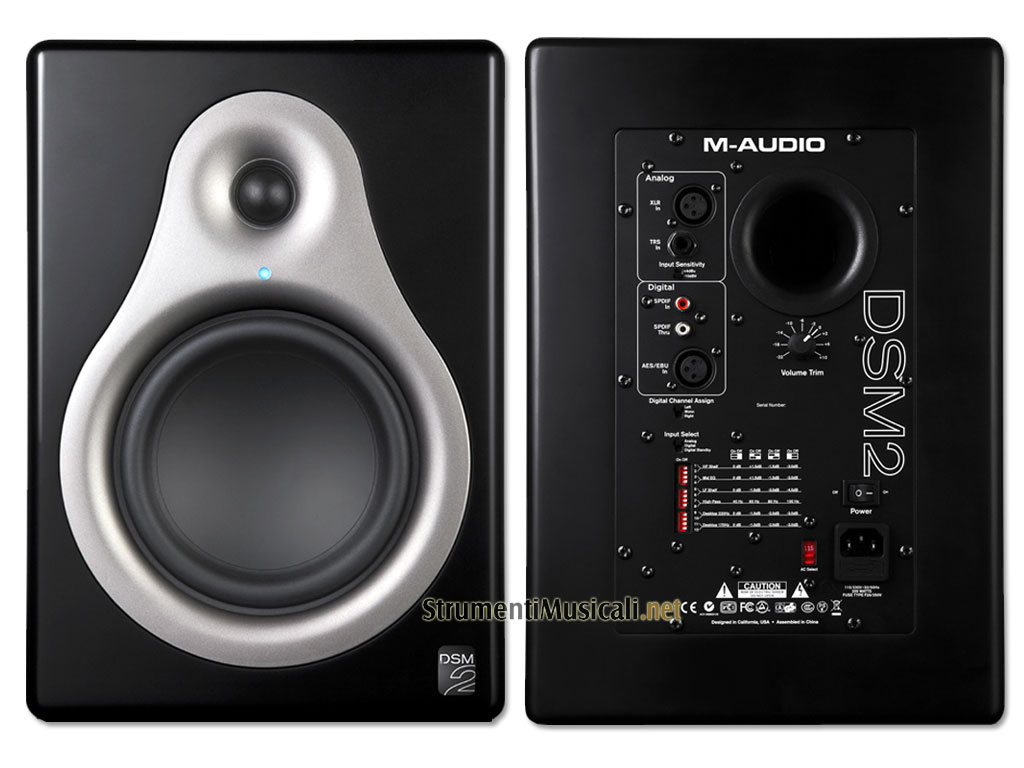 Sviluppato in collaborazione tra M-Audio® e Digidesign®, il monitor di riferimento Studiophile® DSM2 è stato costruito per offrire un monitoraggio superiore e una percezione audio di tipo professionale. E' dotato di un woofer schermato da 8" in alluminio e di un tweeter schermato da 1" in titanio, bi-amplificazione in classe D con 100W per i bassi e 80W per gli acuti. Dispone di un DSP interno per la gestione del cross-over, dell'EQ e della risonanze del cabinet. Studiophile® DSM2 offre ingressi analogici in formato XLR e jack da 1/4 " sbilanciato e ingressi digitali in formato S/PDIF e AES/EBU con convertitori a 24-bit/192 kHz, taratura estesa della risposta in frequenza, regolazione dello spazio acustico e del volume.