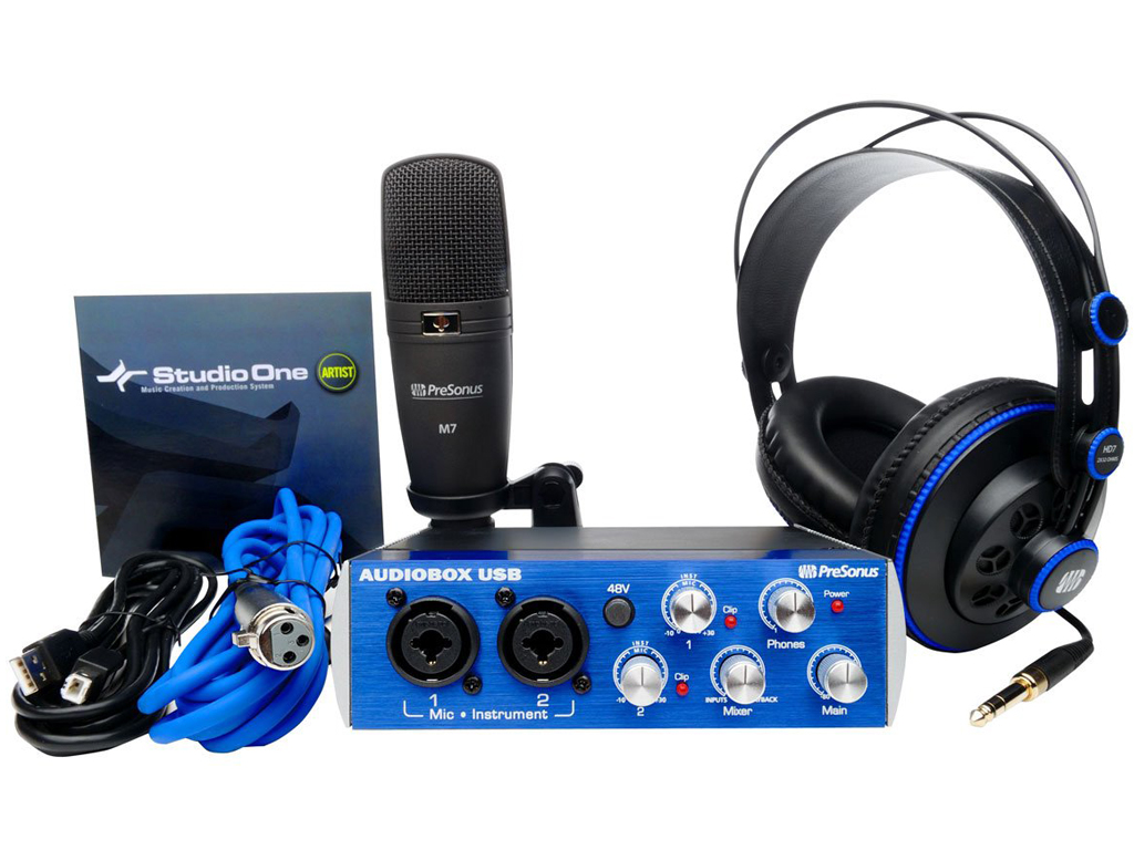 Il kit Presonus 1box contiene tutto ciò che serve per la registrazioe e la produzione, le performance dal vivo ed il podcasting. Presonus 1 box è composto da: Audio Box USB, Studio one, Microfono M7, cuffia H7.