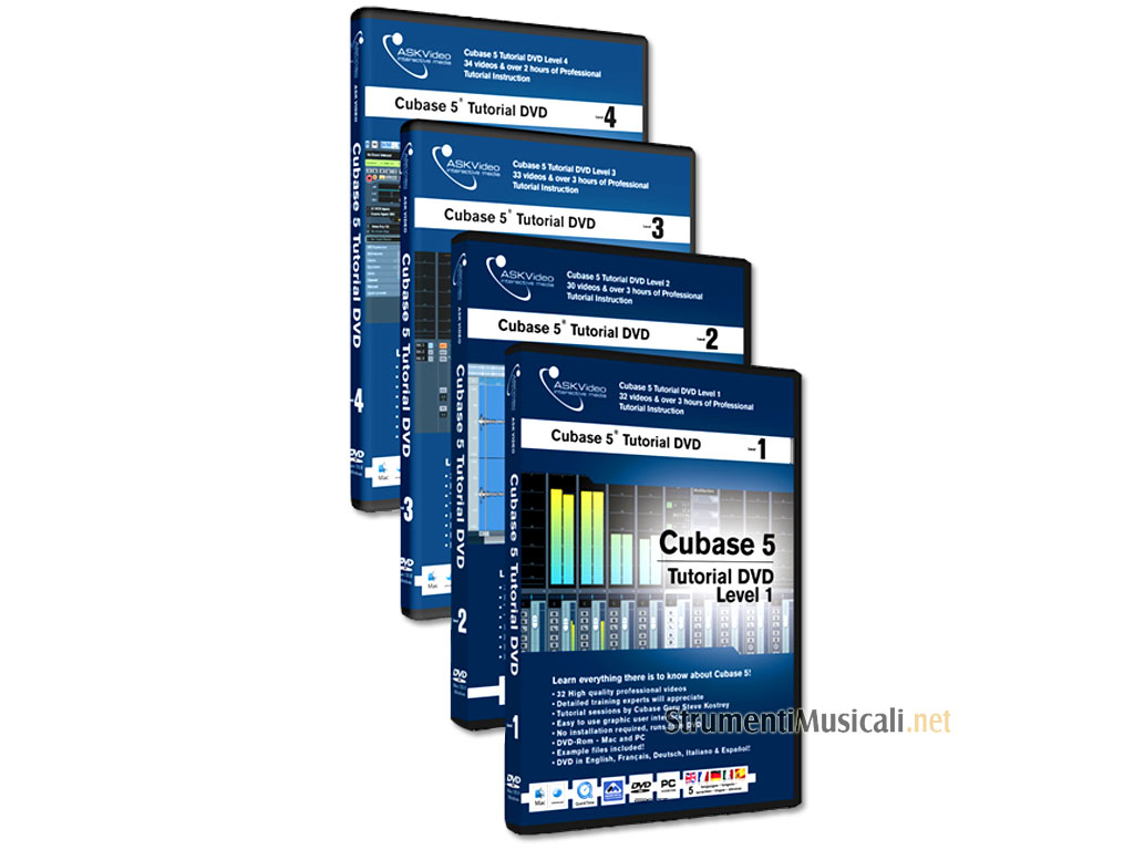 Ask Video Cubase 5 tutorial bundle contiene i livelli 1-2-3-4 in italiano in 4 DVD.