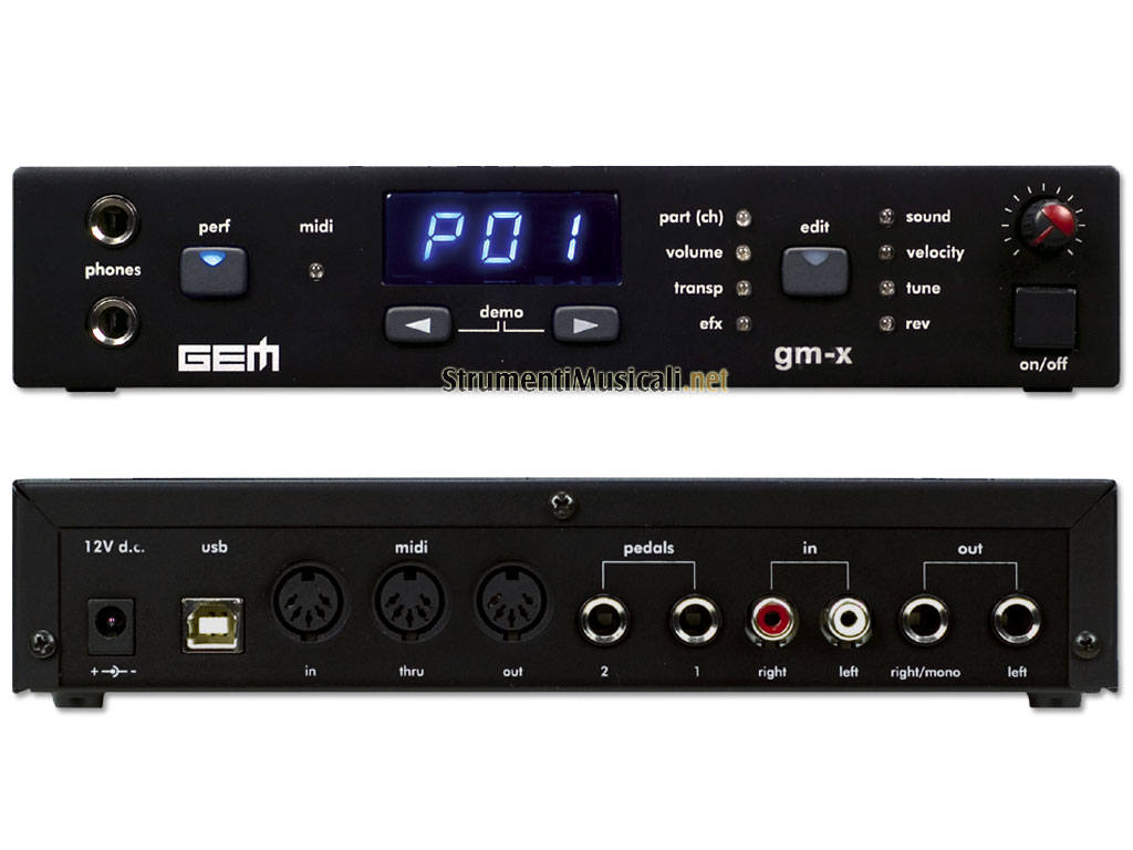 GM-X è il modulo ideale per la produzione di musica moderna e per la creazione di basi musicali professionali, nell'ambito di produzioni multimediali e applicazioni Computer Music. Grazie alla connessione USB e al software editor incluso sarà come avere un "plug-in sound module" sempre in linea, senza pesare sulla CPU del computer. Inoltre, le dimensioni compatte rendono GM-X perfetto per chi necessita di un set completo di suoni da utilizzare via MIDI durante le performance dal vivo. Il processore proprietario DRAKE utilizzato nel GM-X garantisce ottime prestazioni ed un elevato livello qualitativo, con 64 note di polifonia (max.), multi-timbricità a 16 parti e 247 suoni realizzati con 64MB di campioni.
