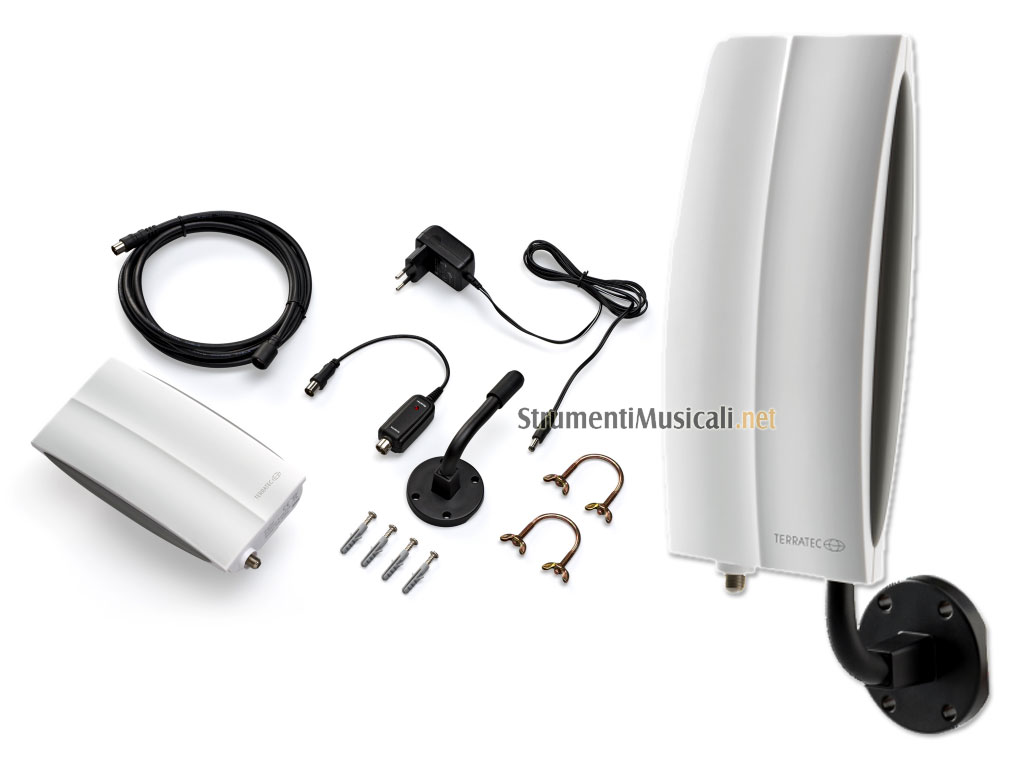 L'antenna 500 è un'antenna attiva progettata in modo particolare per un uso esterno, installabile a muro o su palo, con una struttura resistente ai raggi UV e agli agenti atmosferici. L'antenna è multi-direzionale, consente una ricezione a larga banda del segnale digitale terrestre e grazie anche al nostro software Terratec Home Cinema potete posizionarla sempre in modo ottimale per una ricezione del segnale eccellente.
