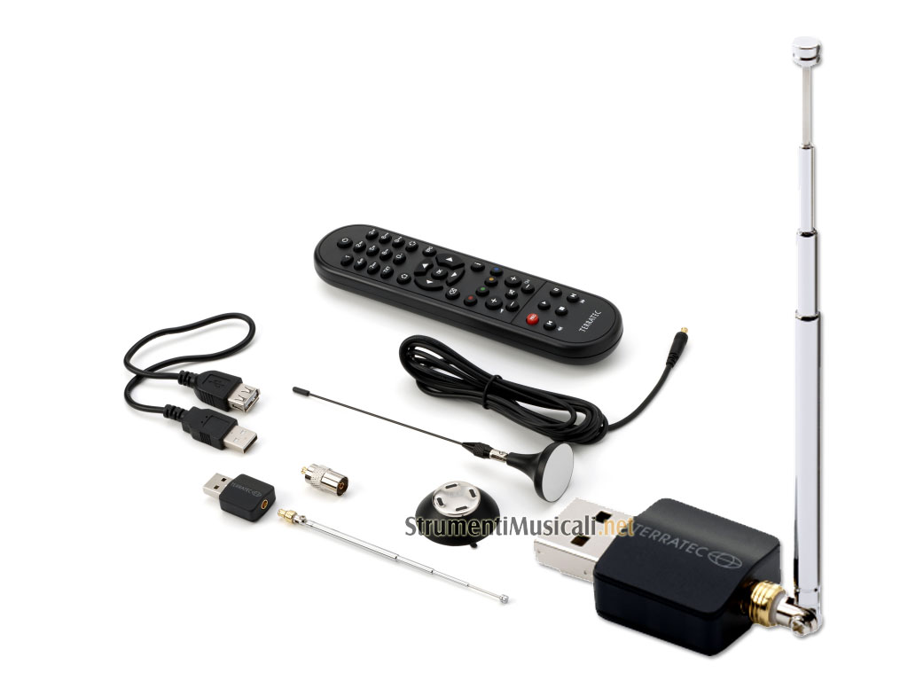 TerraTec T1 è un ricevitore TV mini stick esterno USB 2.0 che consente la ricezione dei canali in chiaro della TV digitale terrestre in modalità stereo, sul vostro personal computer sia in modalità Windows o MAC OS, tramite il normale cavo antenna del vostro impianto di casa o on the road per mezzo dell'antenna indoor inclusa. Inoltre sul dispositivo è presente direttamente il ricevitore infrarossi per la gestione completa di tutte le funzionalità via telecomando fornito in dotazione. TerraTec T1 supporta la modalità HDTV " High Definition TV ", installando automaticamente in ambiente Windows, senza costi aggiuntivi, il codec H.264/AVC " Advanced Video Coding ", noto anche con il nome MPEG-4, sviluppato per i video ad alta qualità (con MAC occorre effettuare l'upgrade di eye tv alla versione full)