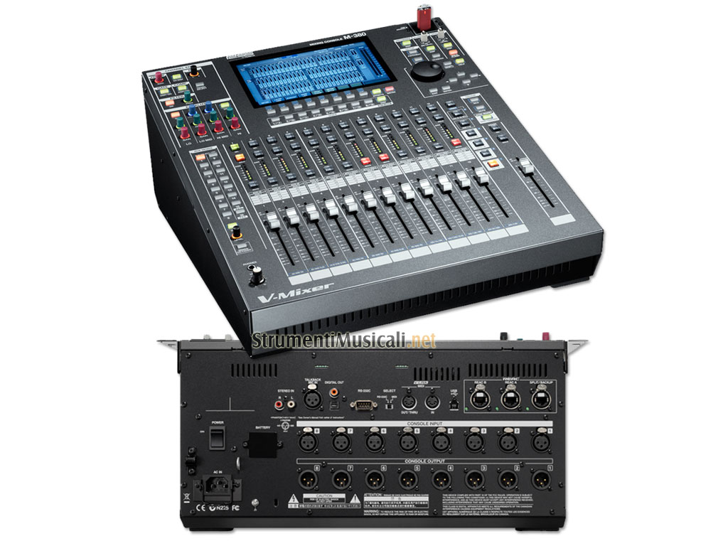 L' M-380 è una console compatta e montabile a rack, con lo stesso motore di mixaggio dell' M-400 e con tecnologia digitale REAC (Roland Ethernet Audio Communication) di trasferimento del segnale audio. L' M-380 fornisce un ambiente di mixaggio potente e configurabile con una elevata qualità audio, un funzionamento intuitivo ed un facile set-up per le applicazioni mobili o in spazi limitati.