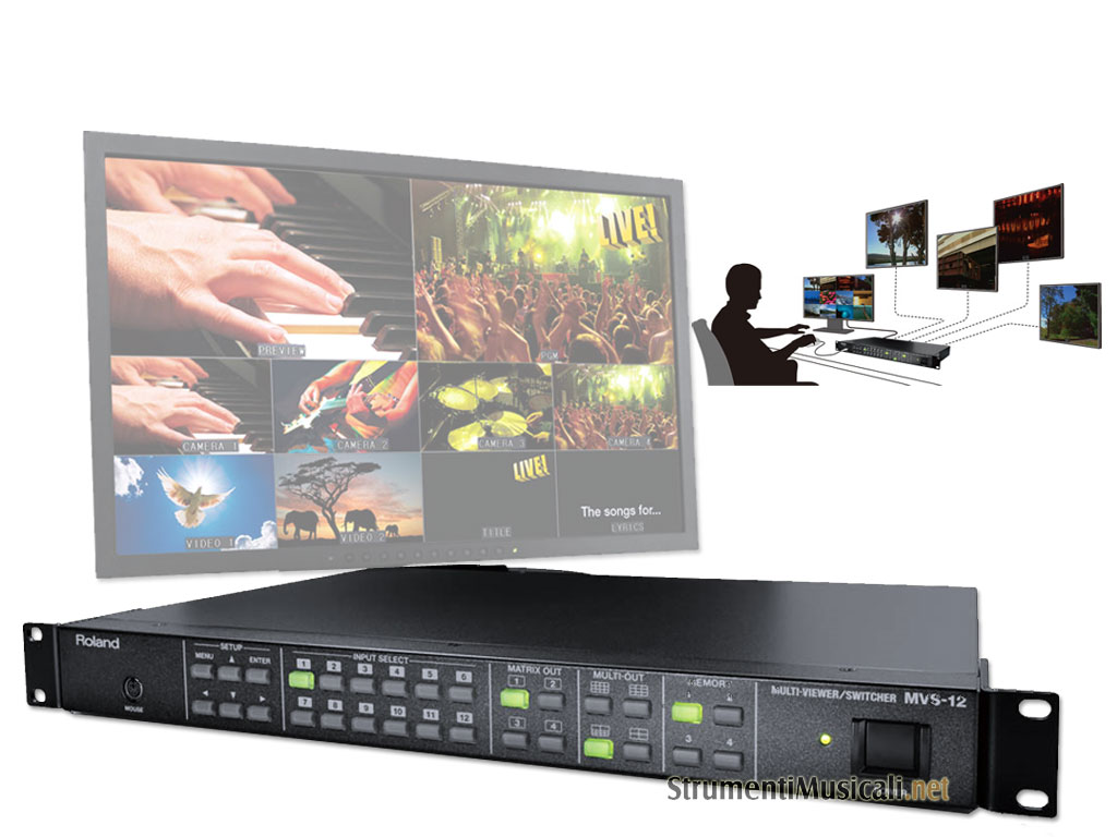 L' MVS-12 controlla e distribuisce facilmente le sorgenti di ingresso. Visualizza tutte le fonti su un unico display HD.