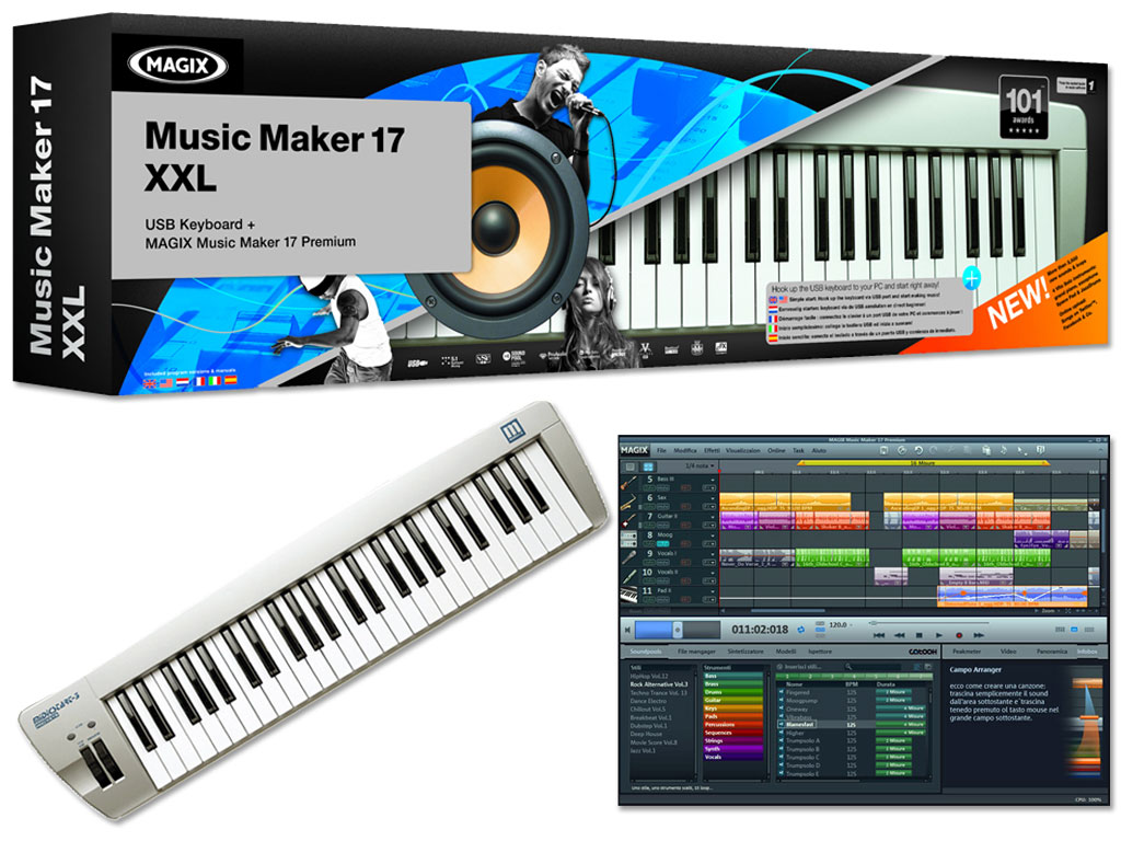 MAGIX Music Maker 17 XXL rappresenta l'unione perfetta tra MAGIX Music Maker e la tastiera USB in dotazione: basta collegare il tutto ed iniziare a suonare subito. Tanti strumenti virtuali ultra-realistici, ideali per comporre, improvvisare e suonare dal vivo. Crea le tue canzoni passo dopo passo: con migliaia di moduli sonori, tanti strumenti Premium e veri effetti da studio, potrai trasformare le tue canzoni in vere e proprie hit.