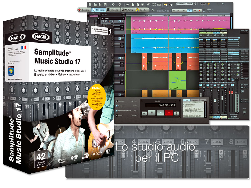 Samplitude Music Studio 17 è la soluzione completa per perfette produzioni musicali su PC con qualità professionale. La nuova versione del programma fornisce tutto il necessario: strumenti intelligenti e algoritmi DSP (100% Samplitude). Samplitude Music Studio 17 rimane nella sua categoria di prezzo il migliore software per l'audio-recording e la composizione. Dall'interfaccia si accede a Easy Recorder, un nuovo potente mixer multitraccia con un look moderno e dai comandi semplici ed intuitivi. La modalità di comando classica di Samplitude Music Studio 17, come la sezione Manager, è stata migliorata e resa ancora più moderna e semplice da usare. Particolarmente utile è anche il Mediapool, strumento efficace per una pratica gestione dei loop audio, ad esempio quelli scaricati da Catooh - il catalogo multimediale online. Dei miglioramenti sono stati effettuati anche all' Audio-Engine ed all'interfaccia.