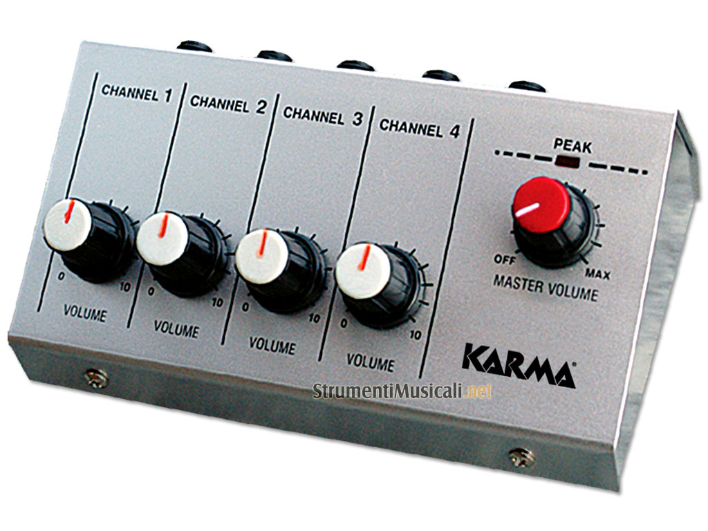 Mixer microfonico dalle dimensioni estremamente contenute. In grado di gestire sino a 4 microfoni dotati di connettore da 6,3mm. Ogni canale è regolabile indipendentemente. Un comando rotante master attenua od esalta l'intera miscelazione eviotando fenomeni di saturazione del segnale audio. Tale saturazione è indicata da un'apposito led "PEAK". Alimentabile sia a batteria (9V) sia da alimentatore.