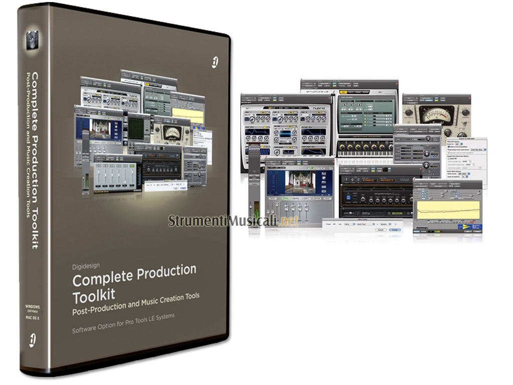 Complete Production Toolkit di Digidesign è l'opzione di espansione per Pro Tools LE più potente che esista e che offre il massimo in assoluto per quanto riguarda la versatilità nella post produzione e nella creazione musicale. Offre supporto per 128 tracce audio e surround 7.1. Compatibile con computer dotati di Windows Vista (32-bit Business o Ultimate), Windows XP o Mac OS X 10.5 qualificati Digidesign, e software Pro Tools LE® 8 (per il monitoraggio di uscite in surround e per ottenere risoluzione audio a 96 kHz è necessario utilizzare un sistema 003®, 003® Rack, 003® Rack+, Digi 002®, Digi 002 Rack™ oppure Mbox® 2 Pro).