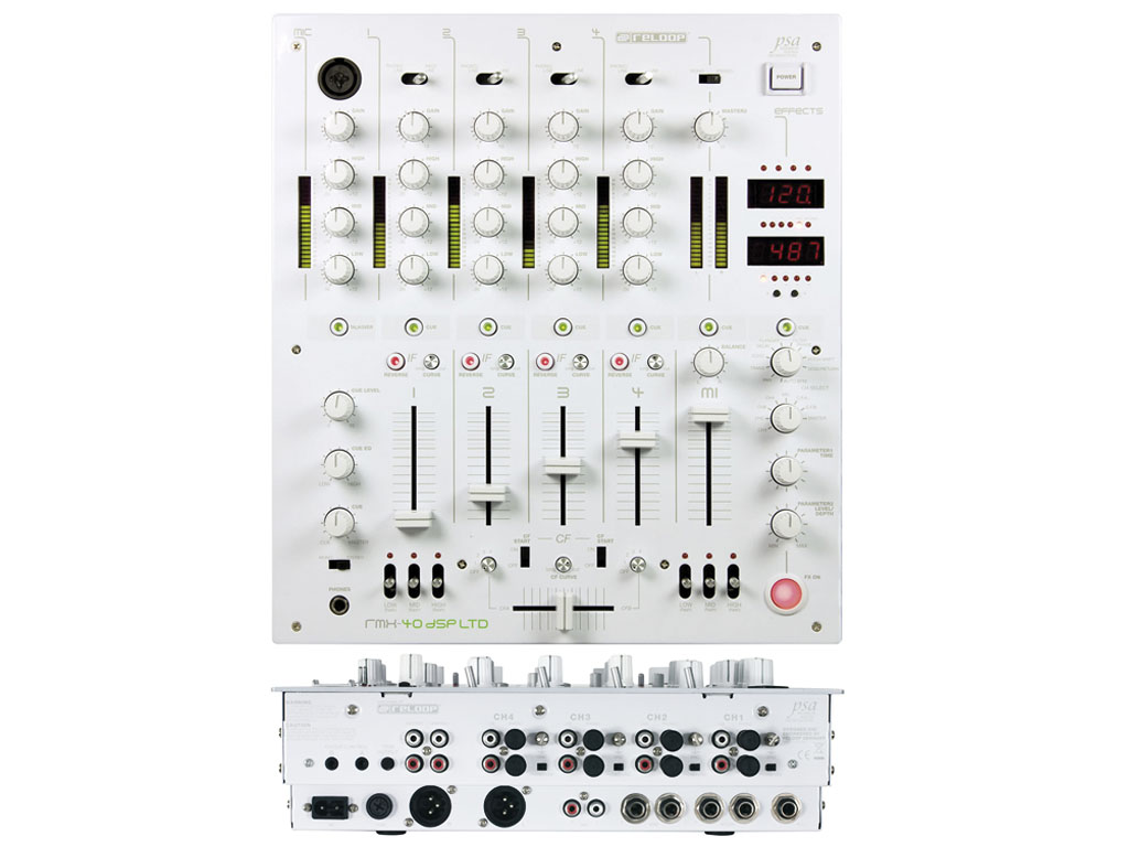 l' RMX 40 è UN mixer DJ stereo professionale a 4+1 canali, con audio di altissima qualità, BPM counter automatico, effetti DSP con regoalzione time e level, sincronizzabili al BPM, crossfade da 45 mm assegnabile, con curva di risposta regolabile, start play e EQ killer a 3 switch con funzione flash per ognuna delle 2 sorgenti, fader di canale da 60 mm, con reverse, curva di risposta regolabile, effect send/return per ogni canale, EQ a 3 bande per i canali 1-4 e mic 2, EQ a 3 bande per talkover e mic 1, EQ ad 1 banda e interruttore mono/stereo per uscita cuffie, uscita master mono compatibile e con balance, connettori XLR (bilanciati) e RCA (sbilanciati), 4 ingressi phono, 4 (+4) line, 1 return, 2 mic, 2 uscite master, 1 send ed 1 rec, EQ range +10/-40 db, finitura in vernice bianca.