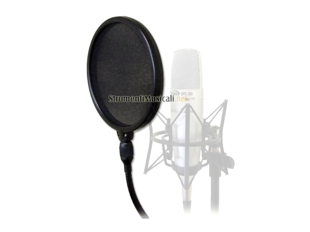Filtro antipop regolabile con speciale schermatura ottenuta mediante rete in nylon a doppio strato che riduce l'eccessiva pressione di alcune consonanti come "p" e "b", e allo stesso modo minimizza le fastidiose sonorità provocate dalle sibilanti senza attenuare gli acuti. Il gambo flessibile offre maggior accuratezza nella regolazione e il clip di fissaggio ne consente il montaggio su qualsisi asta.