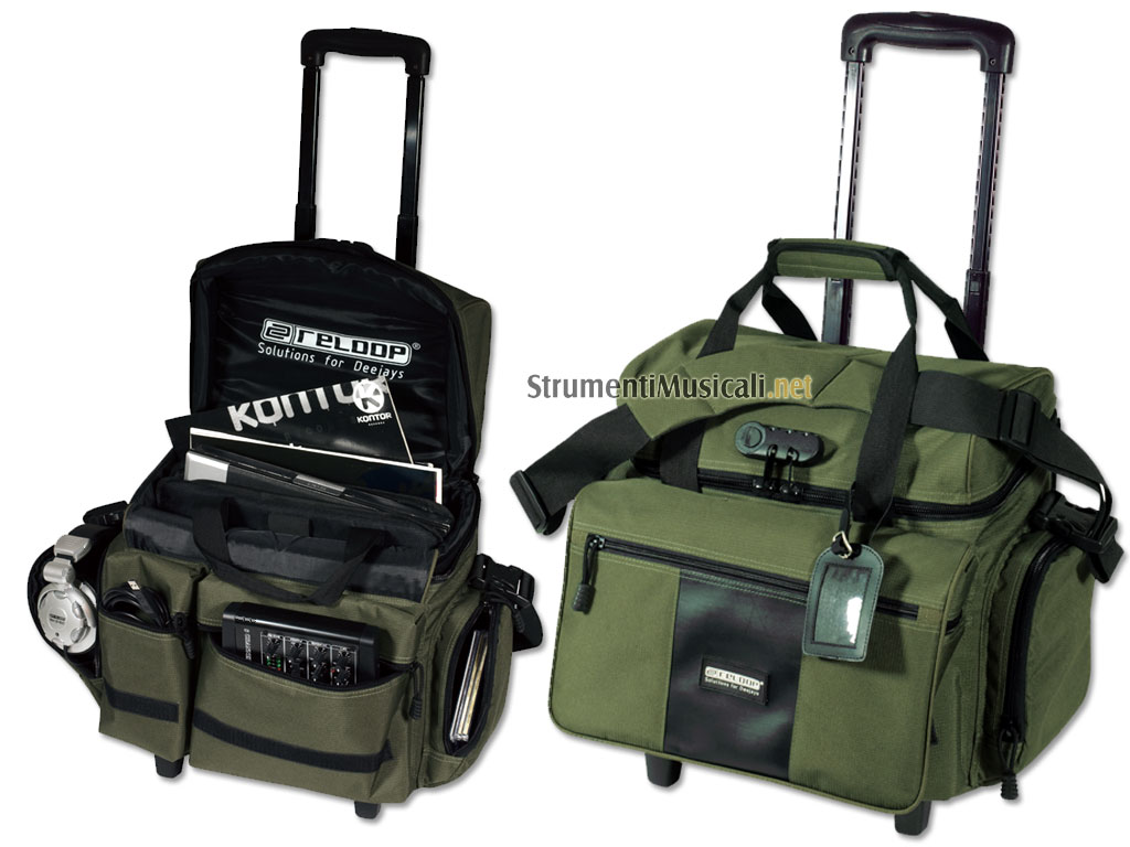 Trolley professionale per il trasporto di vinili, ma anche di un computer laptop, interfaccia audio, testine, cuffie ed altro ancora.