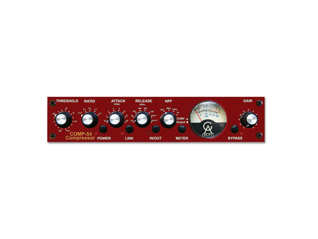 Il COMP-54 è un compressore stile vintage. Il segnale utilizza solo componenti discreti come resistenze, condensatori e transistor. La linee di ingresso e di uscita sono bilanciate e l'unità dispone anche di un terzo trasformatore intermedio. Questo è il modo in cui erano costruiti i componenti audio prima che i circuiti integrati fossero disponibili. I c.i. sono piccoli e poco costosi e sono ampiamente usati nella maggior parte dei progetti moderni. E 'chiaro però che i componenti audio costruiti con le moderne tecnologie non sempre assicurano la migliore qualità del suono percepito o il carattere che l'utente moderno desidera. Al contrario, la qualità del suono soggettiva realizzato da attrezzature d'epoca è spesso preferito a quello fornito da unità moderne. Questo è il motivo per cui così tanti componenti vintage audio vengono clonati e prodotti di nuovo, anche perché gli originali d'epoca sono spesso molto costosi sul mercato dell'usato.
