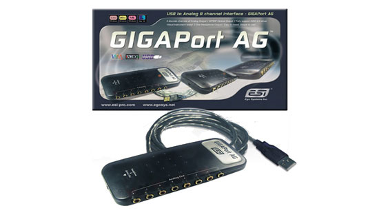 GigaPort AG è equipaggiata con 8 uscite analogiche su connettori RCA con i quali si possono fare missaggi per DVD, trasferire file oppure ascoltare il proprio DVD favorito in surround 5.1 uscendo direttamente dal proprio computer portatile grazie alla facile connessione USB. Sulla scheda è presente anche un Out SPDIF coassiale.