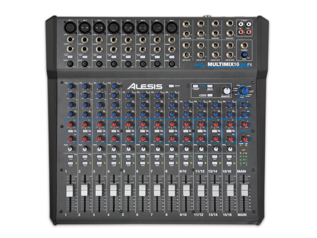 • 16-channel mixer with mic, line, and guitar-level inputs