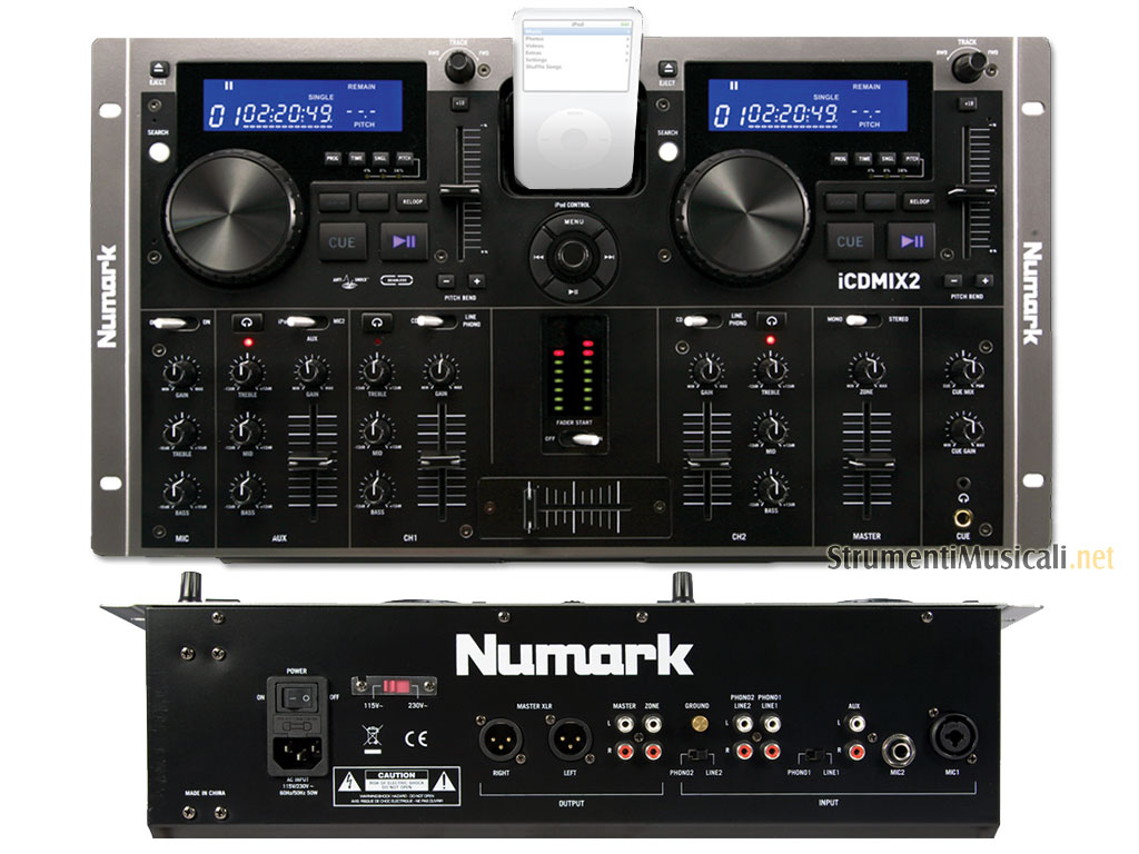 Numark iCDMIX2 è un DJ Set costituito da un doppio lettore CD in una unità mobile di lavoro per DJ facile da trasportare, per locali che devono essere in grado di riporre il proprio sistema in modo rapido e qualsiasi altro DJ in movimento. Setup e smontaggio sono veloci e facili con i sistemi iCDMIX, perché non c'è bisogno di spendere così tanto tempo a disporre i cavi e testare i livelli come nei componenti tradizionali. iCDMIX2 è l'unico dei CDMIX con Universal Dock integrato per iPod, che consente di riprodurre musica da qualsiasi iPod.