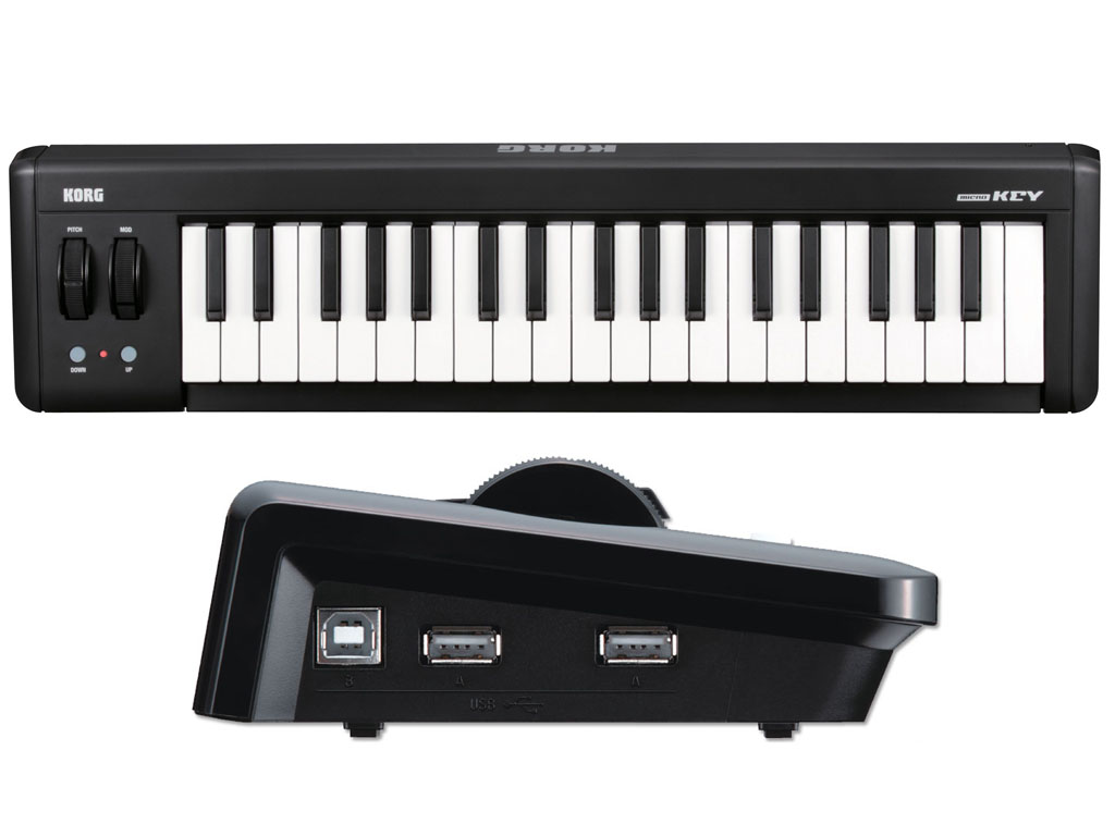 MicroKEY è piccola, leggera, alimentata direttamente dalla porta USB e compatibile con tutte le applicazioni software musicali. La scelta perfetta per controllare i tuoi software per la computer music sia in produzione, sia nelle performance live. MicroKEY offre una tastiera da 37 tasti (mini) sensibili alla dinamica, con lo stesso feeling Natural Touch di quella implementata nel microKorg XL e nella microSTATION. Progettata prestando particolare attenzione al tocco e alla risposta, la tastiera offre un'ottima suonabilità nell'esecuzione di accordi, glissati e frasi melodiche veloci, grazie ad una proporzione tra i tasti bianchi e neri studiata appositamente. I tasti per la trasposizione delle ottave consentono un'estensione fino a 4 ottave sia verso l'alto, sia verso il basso. Mentre la funzione Key Traspose ti permette di adattare la tastiera alla tonalità a te più comoda. Utilizzate insieme, queste funzioni ti permettono di gestire con semplicità tutta l'estensione delle note MIDI. Sono inoltre disponibili due wheel dedicate al pitch bend e alla modulation. I modelli di microKEY a 37 e 61 tasti fungono anche come hub USB, grazie alle due porte USB (di Tipo A) potrai collegare ad esse un Korg nano PAD, oppure nanoKONTROL, o qualsiasi altro device USB per estendere le tue possibilità di controllo. E' necessario invece utilizzare un hub USB alimentato quando si vuole suonare le App MIDI su iPad.