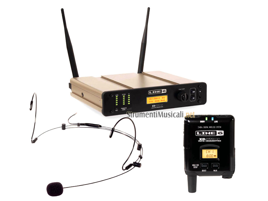 L'XD-V70HS offre le tecnologie digitali di Line 6 che consentono a cantanti professionisti, presentatori e audio providers di sfruttare la facilità di configurazione e di funzionamento, l'audio di altissima qualità e l'affidabilità disponibile nei suoi sistemi wireless. Il sistema digitale wireless V70-XD include un microfono ad archetto, un trasmettitore da cintura con 12 canali, un raggio di azione di 100 metri e un ricevitore a rack in metallo pressofuso da 1/2U.