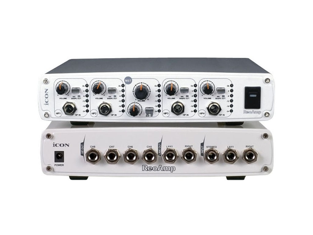 ReoAmp è un amplificatore compatto per cuffie a 4 canali con 8 uscite. Potente per poter pilotare cuffie ad alta impedenza, come le cuffie di riferimento da studio.