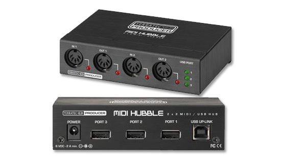 Il MIDI HUBBLE unisce due dispositivi più frequentemente in uso nella computer music, in un unico singolo e pratico contenitore di metallo. Il Box, contiene una interfaccia MIDI multiporta, con due ingressi e due uscite MIDI, e un HUB dotato di tre porte USB 1.1/2.0. Tutte gli ingressi e le uscite sono dotati di LED di stato che indicano tutte le operazioni MIDI in corso. Il dispositivo è inoltre dotato di un limitatore di sovracorrente per proteggere le porte USB. Con l'alimentatore supplementare opzionale, ogni porta fornisce corrente fino a 500 mA (in modalità self- powered).
