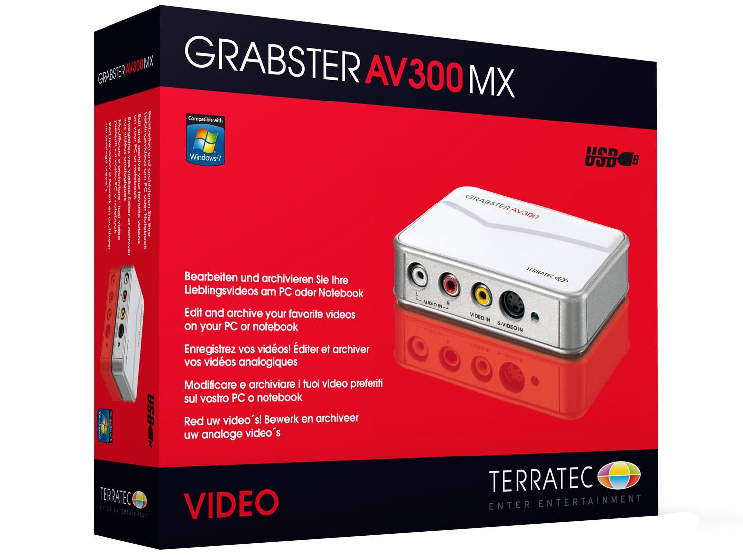 Il Grabster AV 300 MX è un dispositivo esterno di acquisizione audio-video. Si connette al PC via interfaccia USB 2.0, e permette tramite i suoi ingressi audio e video, di acquisire da qualsiasi fonte analogica su PC nel formato digitale. Il Grabster, oltre a trasferire i video su PC, permette contemporaneamente di visualizzare su TV il video in registrazione. E' disponibile la modalità di acquisizione RAW, cioè senza controllo e correzione degli errori, permettendo di digitalizzare i video così come sono. Il software in dotazione, MAGIX Video easy TERRATEC Edition, registra modifica e masterizza i vostri video.