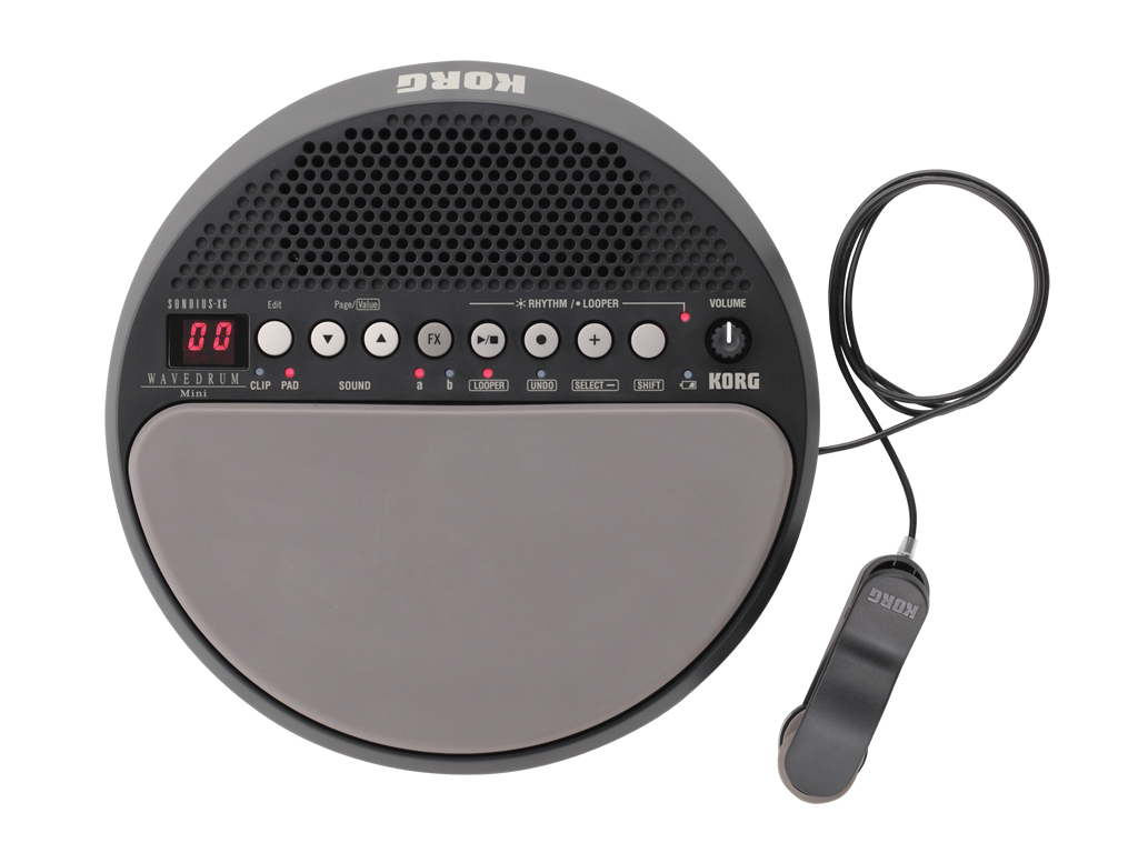 La leggendaria tecnologia Wavedrum è ora disponibile in forma compatta con altoparlante incorporato, alimentazione a pile e un rivoluzionario sensore a clip, per trasformare qualsiasi oggetto in uno strumento. Con suoni di batteria e percussioni provenienti da ogni parte del mondo, suoni di synth rivoluzionari e nuovi suoni originali, il Wavedrum Dynamic Percussion Synthesizer si è ritagliato un posto in prima fila nel set-up di percussionisti, batteristi e strumentisti in genere sparsi un po' per tutto il mondo. Il KORG Wavedrum Mini è uno strumento completamente nuovo, con un concetto di portabilità unico nel suo genere che ti consente, grazie all'alimentazione a pile e allo speaker incorporato, di suonarlo ovunque tu sia. Oltre alla sua superficie pad sensibile alla dinamica, il Wavedrum Mini include un sensore a clip di nuova generazione applicabile a qualsiasi superficie o oggetto, come un tavolo, o una tazza, per consentirti di utilizzarla come un vero e proprio strumento percussivo. Utilizzando il sensore a clip e il pad potrai riprodurre due suoni contemporaneamente, raddoppiando così le potenzialità del Wavedrum Mini. Potrai scegliere tra ben 100 differenti suoni disponibili nella wavetable dello strumento, processabili da uno dei 10 effetti disponibili. Potrai riprodurre i 100 pattern ritmici inclusi nella memoria interna, o registrare all'infinito in overdub le tue performance grazie al looper integrato. Possibilità infinite per un piccolo, ma grande strumento elettronico a percussione. Wavedrum Mini attrarrà tutti quei musicisti e performer a cui interessa distinguersi per le particolarità delle performance, rappresentando inoltre un ottimo punto di partenza per coloro i quali volessero avvicinarsi con un primo strumento al mondo delle percussioni.
