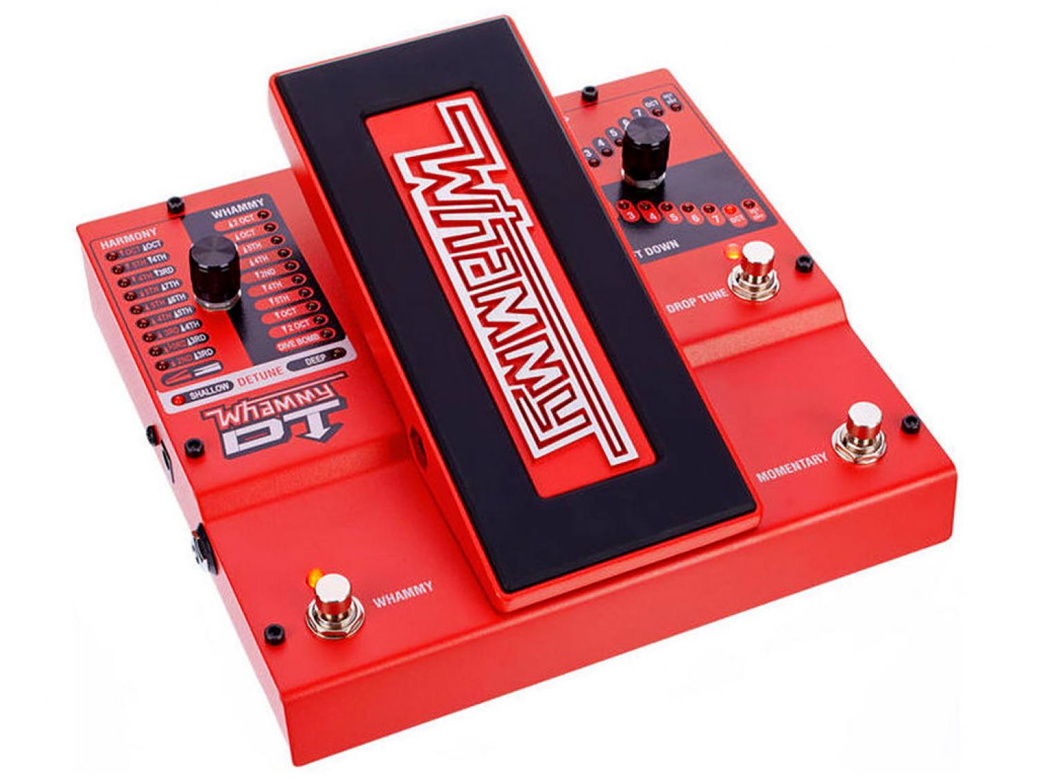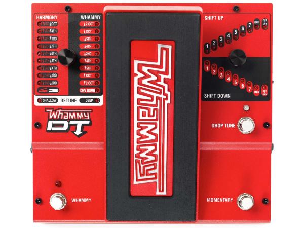 Il Whammy DigiTech è uno dei più leggendari effetti a pedale mai creati, al quale la nuova versione Whammy DT aggiunge una serie di nuove e stupefacenti capacità che comprendono accordature calanti, accordature con capotasto, true bypass, tutte accoppiate con le oramai famose funzioni Whammy. E' dotato di una selezione estesa di capacità di variazione continua dell'intonazione che comprende 9 modalità di bending, da 2 ottave verso il basso a 2 ottave verso l'alto, 9 modalità di bending in armonizzazione, 2 modalità detune e del famoso effetto di sei ottave verso il basso "Dive Bomb". Oltre a tutto questo, il Whammy DT permette a chitarristi e bassisti di modificare istantaneamente l'intonazione senza dover cambiare strumento e senza interrompere il flusso delle esecuzioni con faticose regolazioni dell'accordatura per prepararsi al brano successivo.