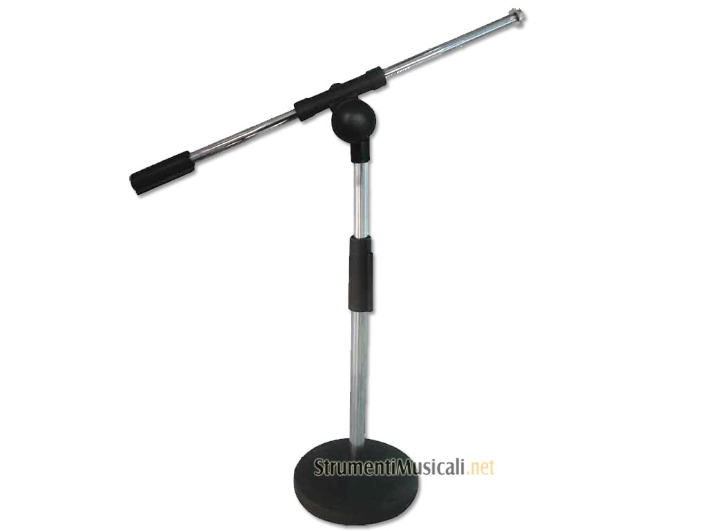 Supporto microfonico con braccetto superiore lungo 42 cm e tubo estensibile in altezza. E' orientabile per posizionare correttamente il microfono.