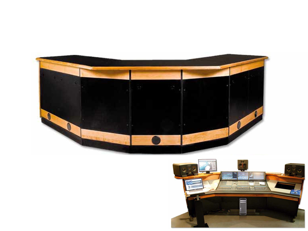 La console della serie Arco è nata per ospitare un mixer digitale Smart, predisposta per ospitare le superfici di controllo più usate come Digidesign e C24, Mackie, o mixer analogici. Costruita su 3 piedi in ferro con una struttura in multistrato di betulla e una superficie antigraffio. I piani sono in legno massello con finitura in ciliegio e ripiani in D-bond di colore grigio. Prevede due spazi rack da 8 unità e la slitta per PC/MAC. Comodo accesso all'area dei cablaggi con passacavo comunicanti e chiusure posteriori a sgancio rapido.