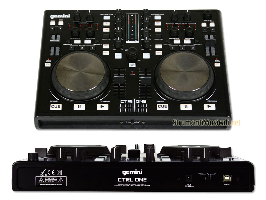 Il Gemini CTRL-ONE dispone di 2 canali separati di mixaggio con 2 grandi Touch-Sensitive Jog Wheel per scratch, cue, e altri parametri assegnabili. È commutabile tra alimentazione tramite bus USB o alimentatore, dando al DJ il controllo sulle opzione di alimentazione. CTRL-ONE è facile da usare sia per un principiante che per i DJ digitali stagionati. Una versione del popolare software VirtualDJ è incluso con entrambe le unità: VirtualDJ è il più famoso software di mixaggio audio e video. Con il rivoluzionario motore VirtualDJ Beatlock, le canzoni rimarranno sempre sul beat, lasciando i DJ eseguire i loro mix più velocemente che mai. Il motore automatico seamless loop e il campionatore sincronizzato permettono al DJ di eseguire remix dal vivo sbalorditivi, senza alcuna preparazione. La rappresentazione visiva e i cues permettono ai DJ di vedere chiaramente la struttura della canzone, e di non essere sorpresi da una pausa.