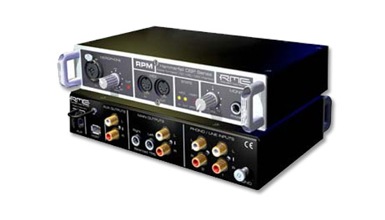 RPM è un dispositivo pensato e realizzato da RME appositamente per DJ e producer che permette la connessione di 2 piatti o 2 sorgenti di linea (CD, DVD, campionatori, ecc.) e di un microfono ad un computer portatile o desktop. Un totale di 5 ingressi indipendenti vengono assegnati a due uscite stereo con anche un'uscita cuffie separata per il monitoring di qualsiasi ingresso (o uscita) in qualsiasi momento tramite TotalMix, il mixer 'DSP based' di RME. Si possono collegare dei dispositivi esterni anche via MIDI per comunicare con eventuali applicazioni software. Un connettore Neutrik XLR/phono combo jack sul pannello frontale consente l'accesso ad un preamplificatore microfonico dello stesso livello 'Classe-A' che si trova nel pre RME QuadMic. Il suo controllo di livello ha un range che va da 10 a 60 dB per adattarsi a qualsiasi applicazione o microfono. Sul pannello posteriore trovano spazio due ingressi 'low-noise' per i piatti (Cinch/RCA) con correzione di frequenza RIAA integrata per le testine a magnete mobile. Con un semplice click del mouse è possibile cambiare dal pannello di controllo la sensibilità in ingresso in tre diversi stadi con un range di 6 dB e impostare gli ingressi da 'phono' a 'line' per eventuali sorgenti di altro tipo (lettori CD, DVD, campionatori, ecc.)