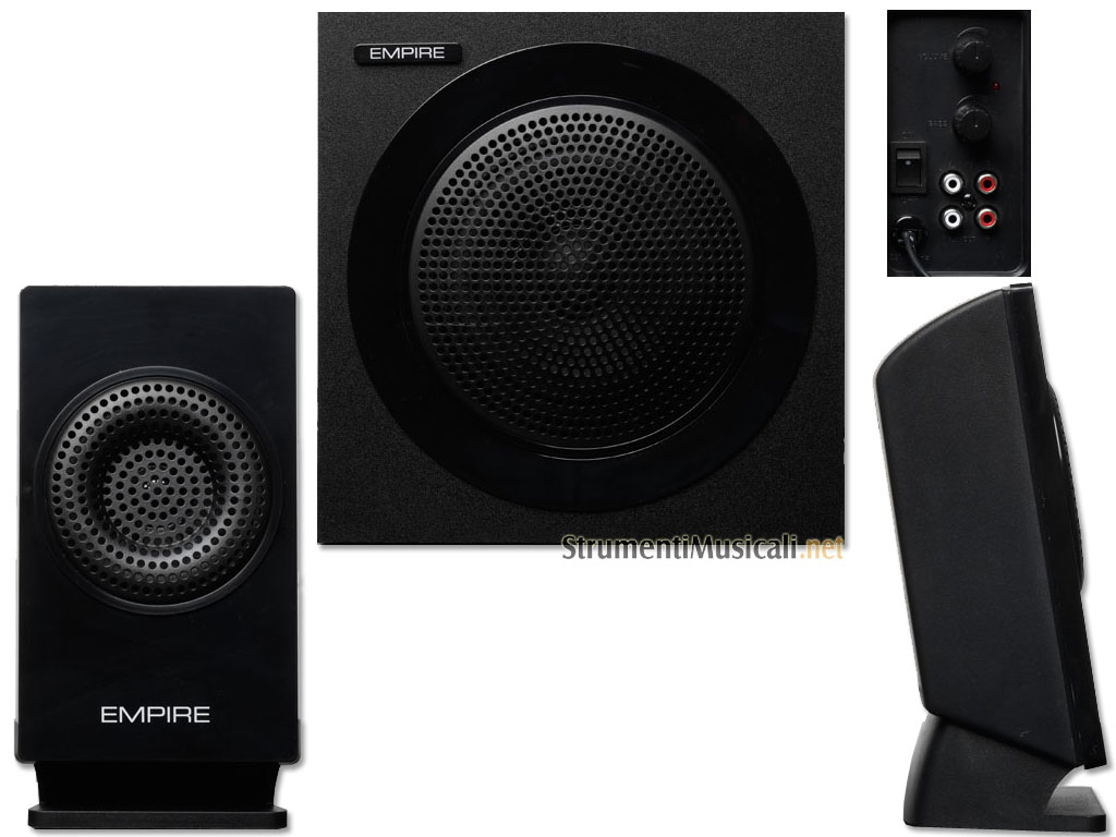 Il nuovo sistema Empire X-Gaming 4500 è stato ideato pensando sia ai Videogamers più esigenti che ai musicisti che possono avere un prodotto eccezionale ad un prezzo veramente contenuto! Il kit si presenta nella classica configurazione 2 satelliti più subwoofer ed utilizza un amplificatore di elevata potenza in grado di erogare 50 Watt totali sfruttati appieno sia dal generoso subwoofer con driver da 5,25" e cabinet in legno MDF, che dai satelliti con driver da 2.5" Wide Band. Sia il subwoofer che i satelliti sono magneticamente schermati per evitare qualsiasi disturbo o distorsioni sui monitor o sui TV LCD/Plasma. Grazie alla connessione 2 PIN RCA il sistema Empire X-Gaming 4500 può essere collegato alle Gaming Consolle di ultima generazione e alle Tastiere Musicali "workstation". Grazie all'adattatore RCA-Minijack incluso è possibile collegare il sistema a Notebook, PC , lettori MP3 e telefoni cellulari compatibili.