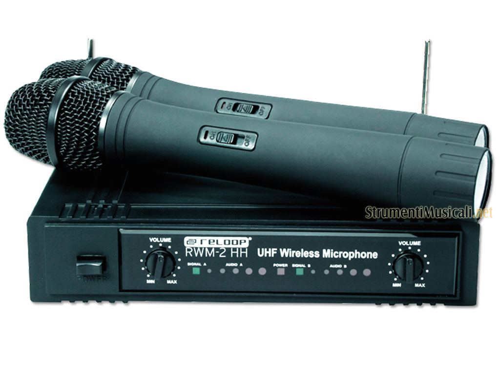 L' RWM-2 HH consiste di un ricevitore ad alta frequenza a 2 canali e di due microfoni con trasmettitore senza fili. Il ricevitore a rack è dotato di due controlli per il volume, nel caso in cui un microfono venga usato per i vocals e l'altro per i background.