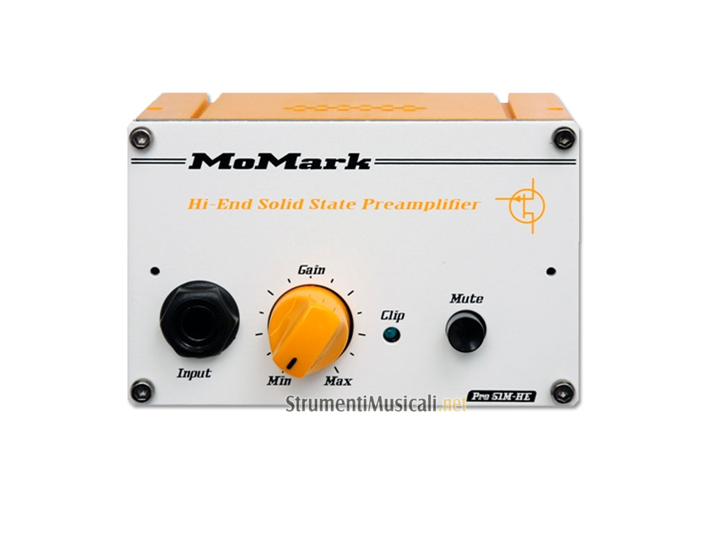 MoMark S1M-HE è un preamplificatore high-end a stato solido che riproduce fedelmente il suono di qualsiasi strumento si suoni attraverso di esso, senza l'aggiunta di nessuna colorazione. Il preamplificatore S1M-HE è dotato di un ingresso sbilanciato (utilizzabile con bassi passivi e attivi), controllo del guadagno, interruttore mute e clip led. L'interruttore mute è utile quando c'è bisogno di cambiare gli strumenti durante una performance, o di accordare in silenzio. Inoltre presenta dei componenti di alto livello, compresi i circuiti placcati in oro.