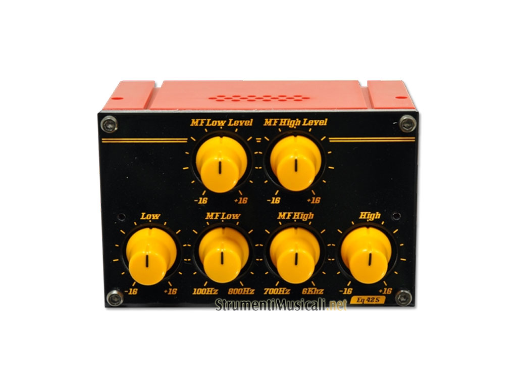 Il modulo EQ42S dispone di quattro bande di EQ con due controlli a frequenza fissa e due controlli semi-parametrici che consentono di scegliere le frequenze nella gamma medio-bassa e medio-alta che si desidera aumentare o ridurre. Questi controlli consentono di compensare la cattiva acustica del luogo, ottimizzare l'ingresso nel nel mix, o ridurre il feedback di strumenti acustici come il contrabbasso.