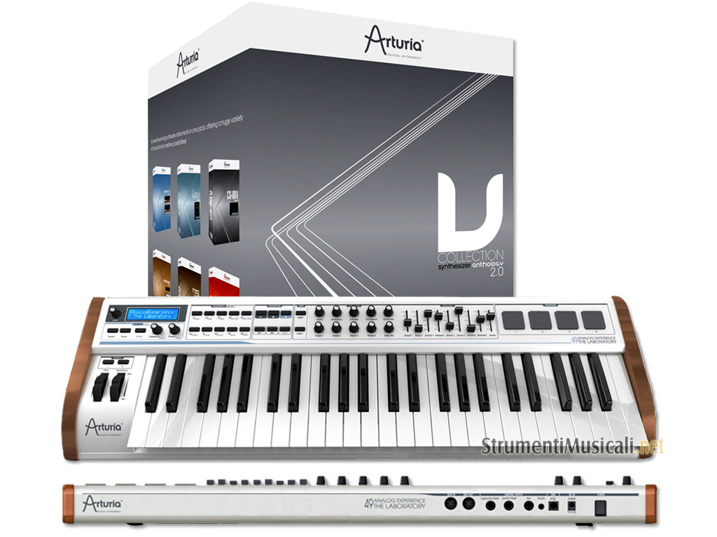 Analog Experience 49 The Laboratory è sia un sintetizzatore ibrido che un controller a tastiera, e consente di suonare in maniera innovativa, semplice e divertente. Analog Experience The Factory è basato su Analog Factory 2.5, uno strumento software che offre 3500 suoni di sintetizzatori leggendari ed una tastiera MIDI di alta qualità a 32 tasti, ora anche con aftertouch. Arturia V Collection 2.0 è un interessantissimo bundle che integra tutte le ultime 'release' dei software Arturia attualmente utilizzati da artisti del calibro di Howard Jones, Alex Gopher, Hans Zimmer, Jean-Michel Jarre, Trent Raznor, Steve Porcaro, Lyle Mays e Herbie Hancock. I synth inclusi nella V Collection sono: Moog Modular, minimoog, CS-80, Prophet 5 e Prophet VS, ARP 2600 e Jupiter-8.