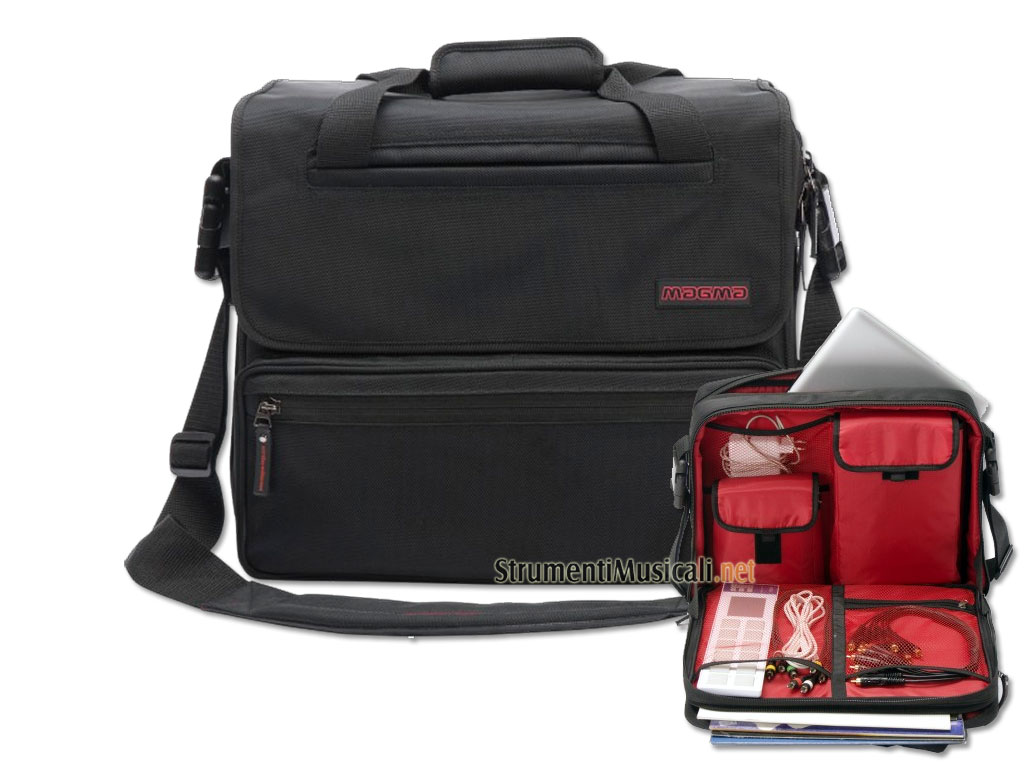 Borsa semirigida ed imbottita in grado di contenere laptop fino a 15.4", dischi in vinile, schede audio, cuffia e accessori. E' dotata di tracolla a spalla - colore rosso.