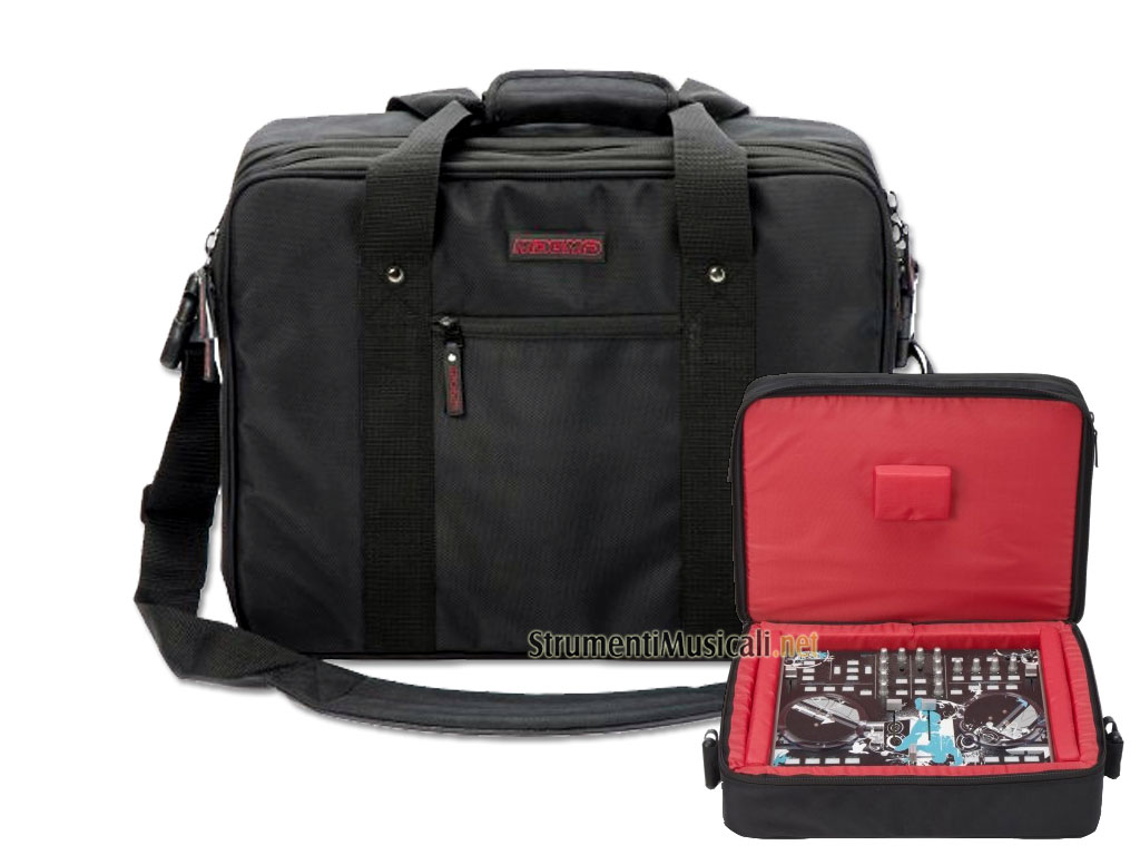 Borsa semirigida ed imbottita in grado di contenere laptop fino a 17", 1 controller tipo Vestax VCI 300 o Hercules 4 MX, schede audio, cuffia e accessori. Dotata di tracolla a spalla - colore nero con interno rosso.
