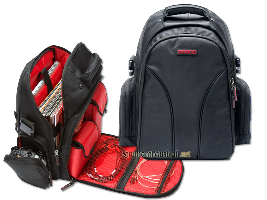 Zaino imbottito in grado di contenere laptop fino a 17", 30 dischi in vinile, schede audio, cuffia e accessori oppure 1 battle mixer tipo Rane TTM 57SL, VCI-300 o APC-40 - colore nero.