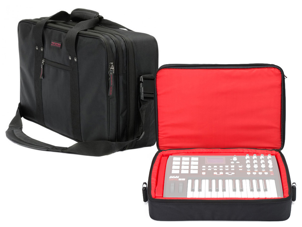 Borsa semirigida ed imbottita in grado di contenere laptop fino a 19", 1 controller tipo Vestax VCM 600, Native Instruments S4, Allen&Heath Xone:DX o Akay APC 40, dischi in vinile, schede audio, cuffia, accessori ed effetti personali.