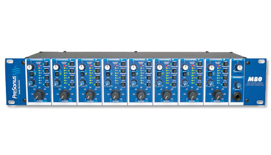 L'M80 è un preamplificatore microfonico e di linea in classe A con otto canali avente come caratteristiche un basso rumore di fondo, trasformatori di ingresso bilanciati, impedenza bassissima del bus mix e un controllo per fornire calore al suono in stile vintage.