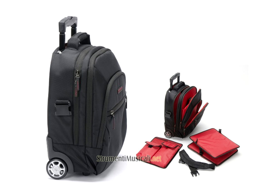 Borsa semirigida ed imbottita in grado di contenere laptop fino a 17", 1 controller tipo Allen&Heath Xone:DX, Vestax VCI 300, Akay APC 40, Hercules 4 MX o 1 battle mixer tipo Rane TTM 57 SL, schede audio, cuffia, laptop stand, accessori. E' dotato di trolley di alta qualità e di tracolla a spalla.