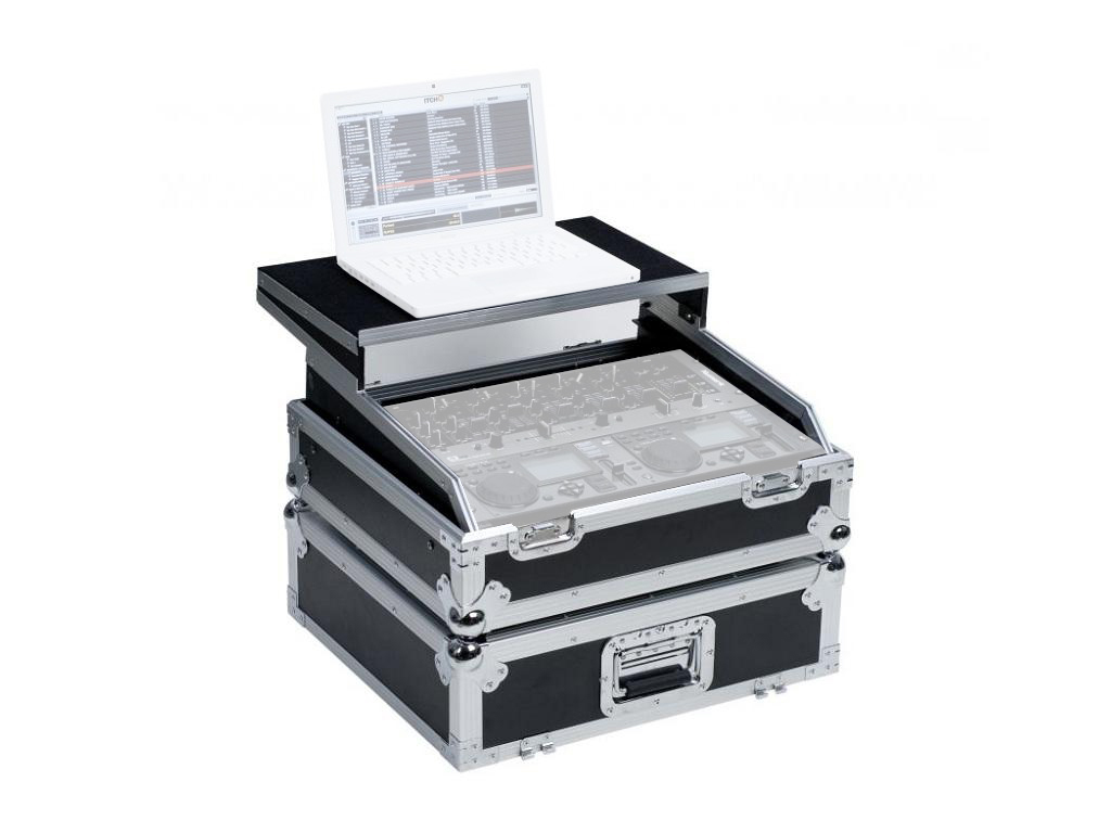 Flight case in grado di contenere un set composto da mixer, effetti, controller 19" tipo Denon HC-5000, ed un laptop fino a 17". Grazie al particolare disegno dello chassis questo modello permette di trasportare il materiale già installato senza rischi durante il trasporto.