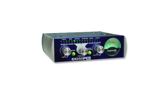 Il Comp16 semplifica il problema della compressione e del limiting, offrendo dei preset già ottimizzati. Questi includono programmi adatti per la voce, le percussioni, gli strumenti a corda, le tastiere, il lmiting e gli effetti. Sul pannello frontale potrete trovare un VuMeter che può essere utilizzato sia per monitorare il livello d'uscita che il livello di riduzione del gain, causato dalla compressione. Vi è inoltre un pulsante dedicato al BYPASS per comparare in modo semplice e veloce il segnale processato con quello originale. Altre specifiche includono una soglia del rumore di fondo di -98 db, +2dBu di headroom connessioni realmente bilanciate (su connettori jack stereo ed XLR). Il Comp16 è alimentato da un apposita unità esterna.
