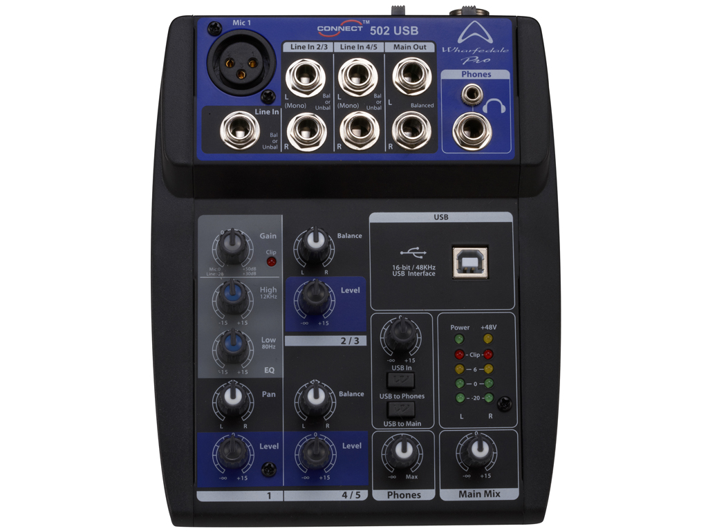 Il Connect 502 offre caratteristiche professionali tipiche dei grandi mixer come alimentazione phantom e ingressi microfonici bilanciati XLR, che vi daranno funzionalità complete ideali per la musica dal vivo, home recording studio e impianti fissi. I preamplificatori microfonici utilizzano gli stessi componenti di alta qualità, e metodi di costruzione impiegati nei mixer della serie SL.