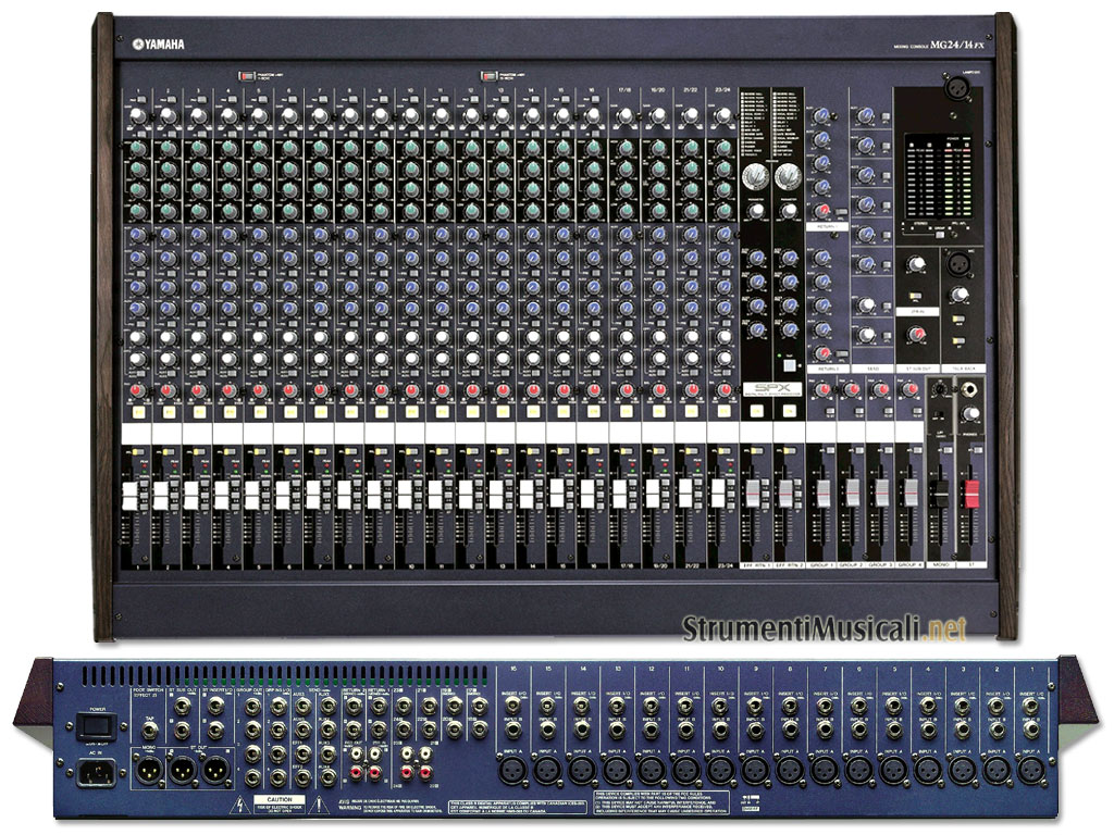 L' MG24/14FX è dotato di 24 ingressi per importanti applicazioni audio dal vivo in cui è necessario gestire in modo efficiente un gran numero di fonti; è inoltre dotato di due processori di effetti integrati Yamaha SPX.