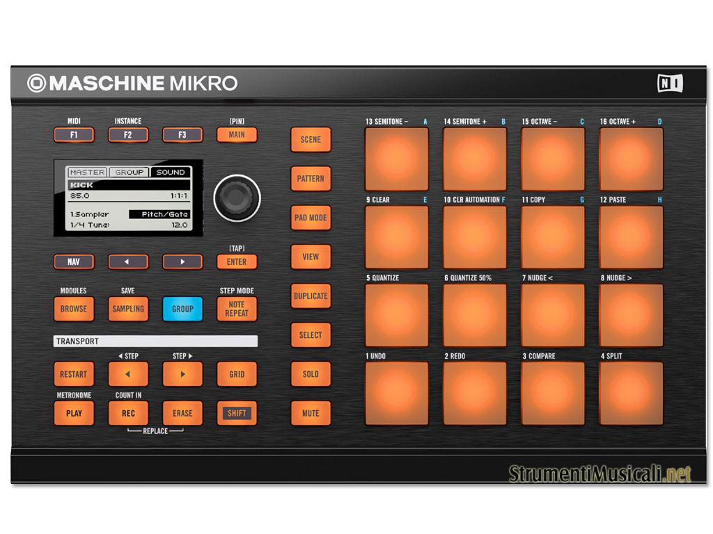 MASCHINE MIKRO è uno strumento professionale per la produzione musicale che coniuga la flessibilità del software con l'immediatezza dell'hardware. Hai la possibilità di creare ritmi, linee di basso, accordi e melodie, e costruire tracce al volo con l'intuitivo sequencer clip-based. MASCHINE MIKRO ti offre anche un potente campionatore, effetti professionali e supporto completo per plug-in VST e Audio Units. Cosa dire di più? E' anche possibile eseguire MASCHINE MIKRO come plug-in direttamente dalla vostra DAW.