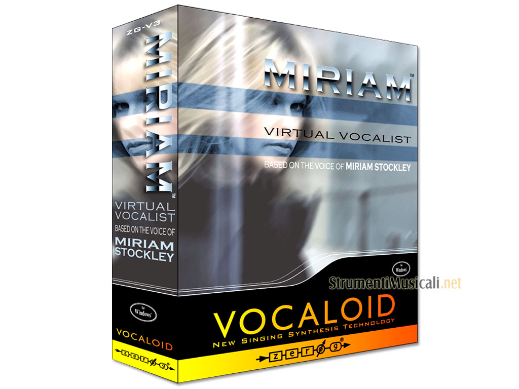 MIRIAM è la nuova cantante virtuale modellata sulla voce di Miriam Stockley. Miriam è un ulteriore passo avanti della tecnologia Vocaloid e porta le possibilità di creazione della voce a livelli finora sconosciuti. Il nuovo motore software di sintesi di Vocaloid è ora tre volte più veloce del precedente. Nessuna attesa per il rendering delle parti vocali. Il vostro lavoro viene riprodotto in un secondo con la nuova modalità "Play with synthesis" e potrete creare tracce o particolari effetti vocali di incredibile realismo in modo semplice e veloce. Potrai creare tracce vocali di cantanti espressivi con qualsiasi testo (in inglese) che vorrai. Dovrai solo inserire le parole e farle sintetizzare dal programma. Poi, grazie alle possibilità fornite da Vocaloid, prova ad aggiungerci espressione, dinamica, vibrato,ecc.. VOCALOID della Zero-G può essere usato in modalità "Standalone", come uno strumento VST in ogni sequencer/applicazione audio che supporti il formato VST o può essere sincronizzato con tutti i sequencer o applicazioni compatibili col protocollo ReWireT.