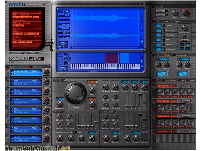 • Campionatore virtuale UVI engine, 32 bit/192 kHz, mono, stereo e surround 5.1