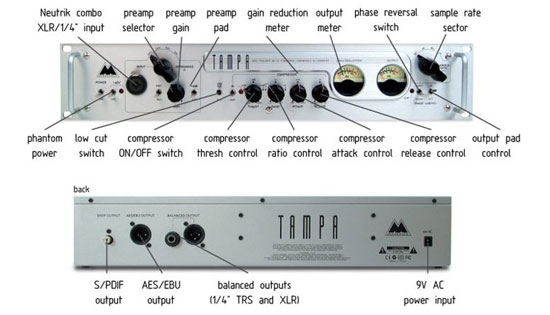 Preamplificatore microfonico professionale con tecnologia Temporal Harmonic Alignment (migliora la phase delle armoniche dell'intero spettro e ricrea sonorità valvolari), dotato di preamp analogico solid state in classe A, phantom power, compressore analogico dual servo optical, 1 In analogico combo bilanciato/sbilanciato, 1 Out analogico XLR e jack da 1/4" bilanciato/sbilanciato, 1 Out digitale (mono L+R) AES/EBU e S/PDIF coassiale a 24 bit / 44.1, 48, 88.2 e 96 kHz, 2 indicatori di livello analogici (compressione e livello d'uscita), controlli di impedenza, gain, inst/mic, filtro low-cut a 80 Hz, inversione di fase, phantom power on/off, compression on/off, gain reduction, thershold, ratio, attack, release, headroom, sample rate, formato rack (2 unità).
